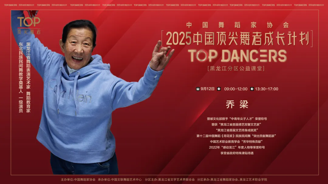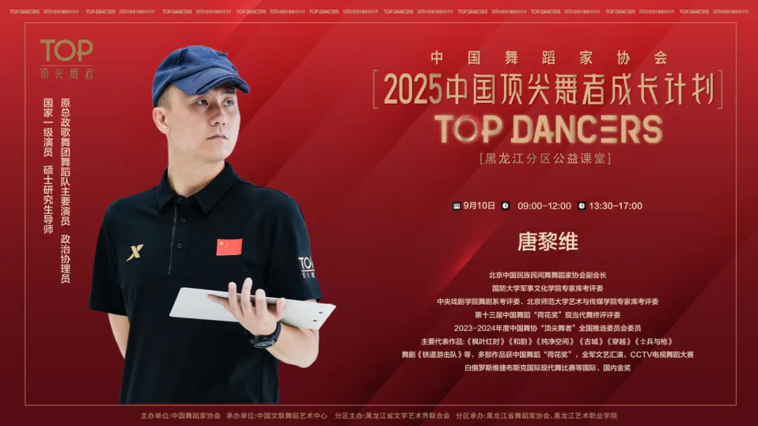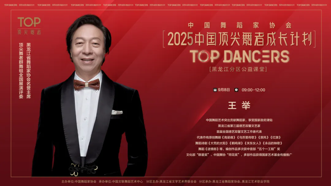 9月8日至12日,2025中国顶尖舞者成长计划黑龙江公益课堂在哈尔滨市成功举办,活动由中国舞蹈家协会主办,中国文联舞蹈艺术中心承办,黑龙江分区由黑龙江省文学艺术界联合会主办,黑龙江省舞蹈家协会、黑龙江艺术职业学院承办,来自省内各高校、院团、新舞蹈群体300余人参加公益课堂。
