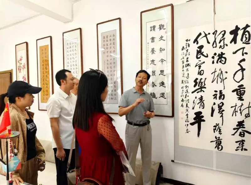 会后,与会代表参观了南岔县文联文艺工作室及书法活动室。在现场,南岔县书协主席刘杰进行书写示范,并与大家深入交流书法艺术学习、创作心得。