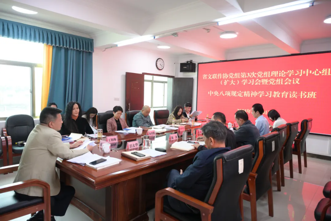3月21日,浙江省文联召开党组(扩大)会议,传达学习习近平总书记关于深入贯彻中央八项规定精神学习教育的重要讲话和重要指示精神,认真贯彻中央和浙江省委有关会议精神,研究部署开展深入贯彻中央八项规定精神学习教育工作。
