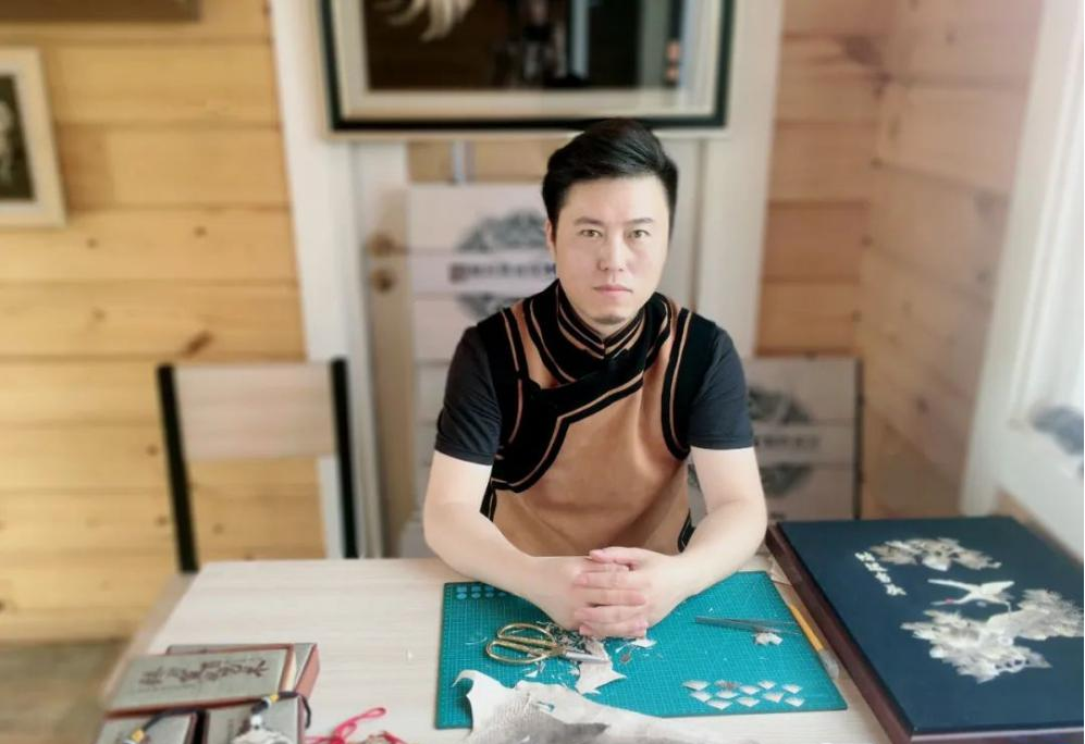佳木斯市赫哲族青年解永亮,自幼受家族鱼皮画技艺熏陶,一把剪刀、一块鱼皮,在他手中幻化为雄鹰振翅、骏马奔腾。他并未止步于传统,而是将现代美术设计理念融入创作,开创出浮雕、掐丝等多元技法。2013年,他成为首位赫哲族国家级画院画家;2025年,作品《秋韵》被中国国家版本馆永久收藏。解永亮说:“传承不是复制,而是让传统活在当下。”