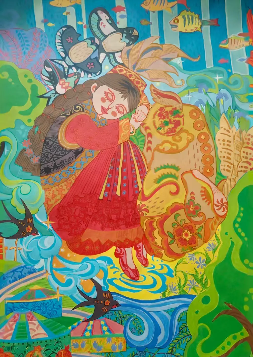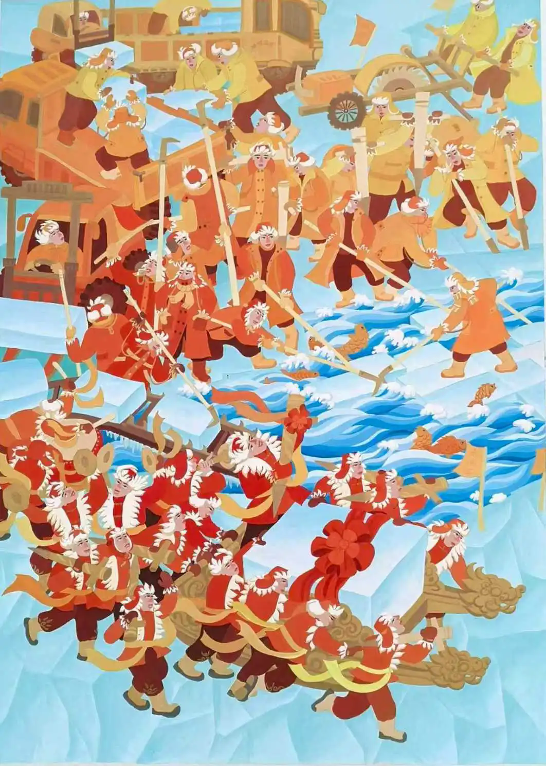 展览共收到来自全省各地的投稿作品300余件,经专家评审,最终遴选出120件作品入围,其中获奖作品51件,入选作品69件。展出作品题材广泛,根植黑土文化土壤,贴近北方乡村生活,主要描绘田园风光、农业生产场景以及农民日常生活、农村风俗风情等内容;风格多样,构图奇特大胆,色彩浓艳热烈,造型纯真质朴,展现出独特的文化内涵、鲜明的地域特色。同时,根据省文联文化润疆工作安排,本次展览邀请了新疆阿勒泰地区农民画群体的20件作品参展,阿勒泰农民画用色大胆、构图饱满、主题明确、民族特色浓郁,把游牧文化、冰雪文化、文旅经济融合展现得淋漓尽致。