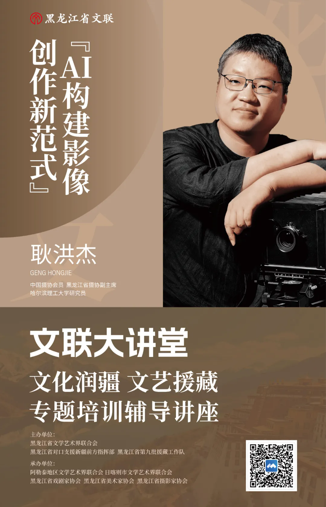 由黑龙江省文学艺术界联合会、黑龙江省对口支援新疆前方指挥部、黑龙江省第九批援藏工作队主办,阿勒泰地区文联、日喀则市文联、黑龙江省戏剧家协会、黑龙江省美术家协会、黑龙江省摄影家协会承办的黑龙江省文联“文化润疆 文艺援藏”专题培训辅导讲座第二期《AI构建影像创作新范式》将于9月30日10时在腾讯会议APP线上开讲。