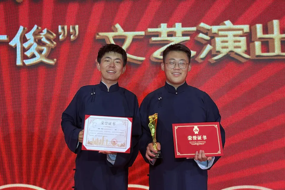 近日,第五届“马季杯”全国大学生相声展演之“相约才俊”文艺演出在北京科技大学天津学院圆满落幕。本届展演由中华曲艺学会、中共天津市委宣传部、天津市文学艺术界联合会、天津师范大学、宝坻区人民政府联合主办,吸引了来自全国各地共141所高校学生的430件参演作品,经过层层筛选,最终有29个节目脱颖而出,角逐“创新才俊”“传承才俊”“风采才俊”三大荣誉。黑龙江省曲艺家协会和哈尔滨市曲协共同推荐的相声《神话》成功入选,哈尔滨工程大学学生单策、薛源双双荣获本届展演“创新才俊”称号。这是我省今年第二次入选全国大学生曲艺展演活动。此前,黑龙江艺术职业学院、哈尔滨学院和哈尔滨工程大学的3个曲艺节目同时入选第五届全国大学生曲艺周展演。
