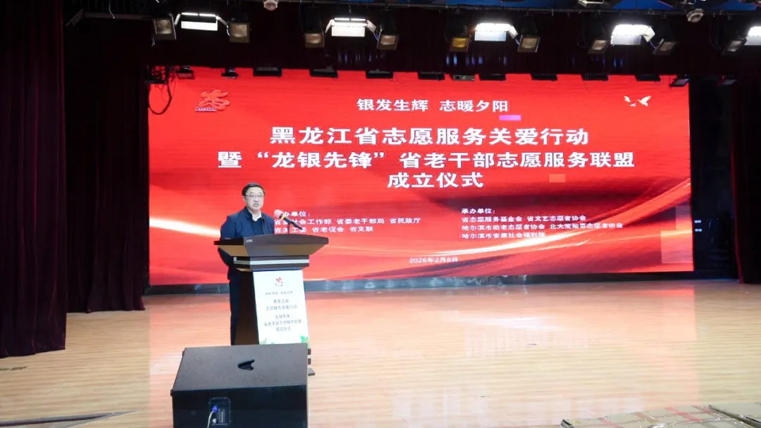为深入贯彻习近平总书记关于志愿服务的重要论述重要指示精神,和给“银龄行动”老年志愿者代表回信、致中国志愿服务联合会第三届会员代表大会重要贺信精神,落实中央社会工作部元旦春节期间志愿服务工作部署,聚焦“老小残困”群体急难愁盼,以志愿力量为老年群体送上新春祝福与温暖关怀,2月6日,“银发生辉 志暖夕阳”黑龙江省志愿服务关爱行动暨“龙银先锋”省老干部志愿服务联盟成立仪式在哈尔滨市安康社会福利院举行。