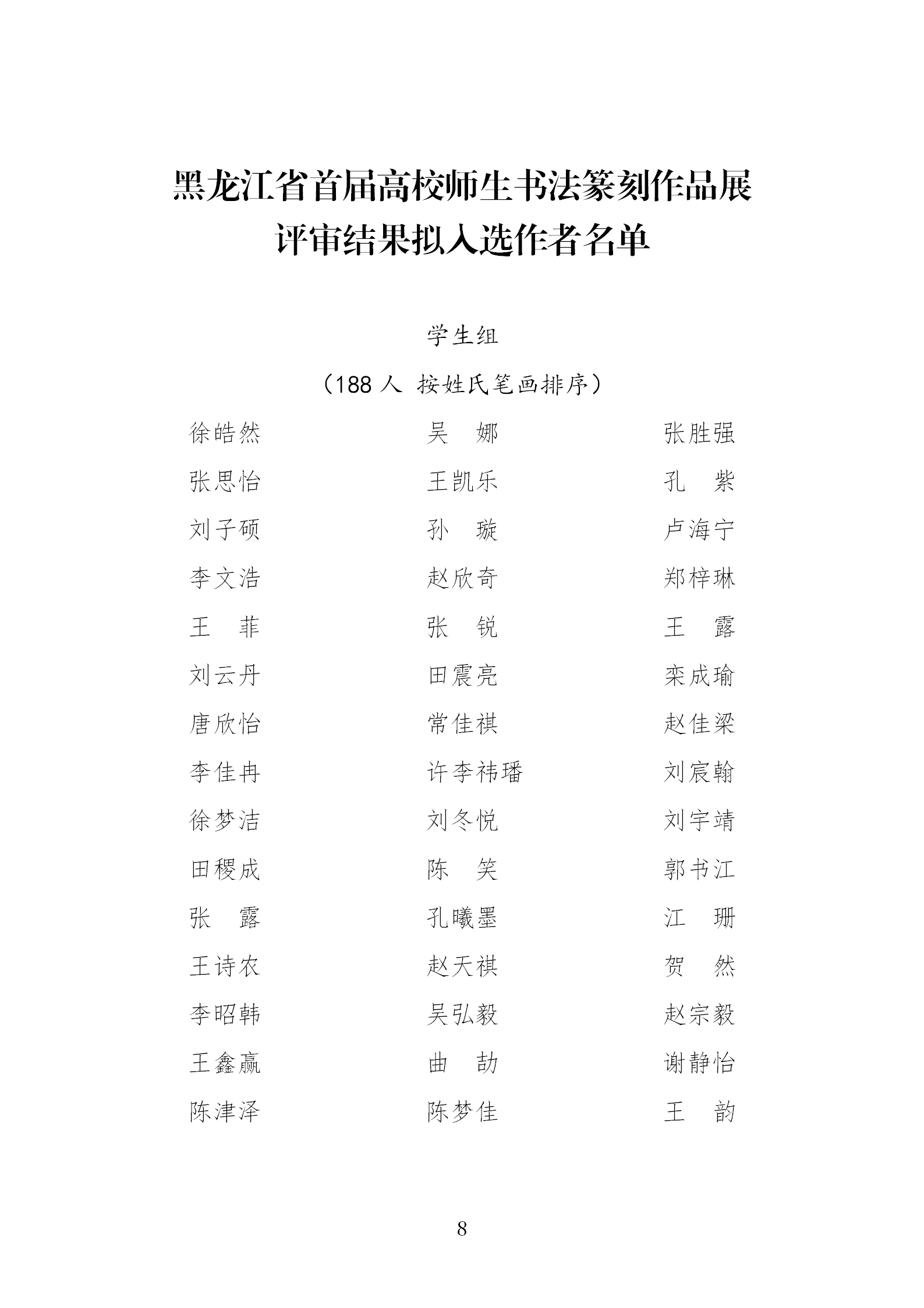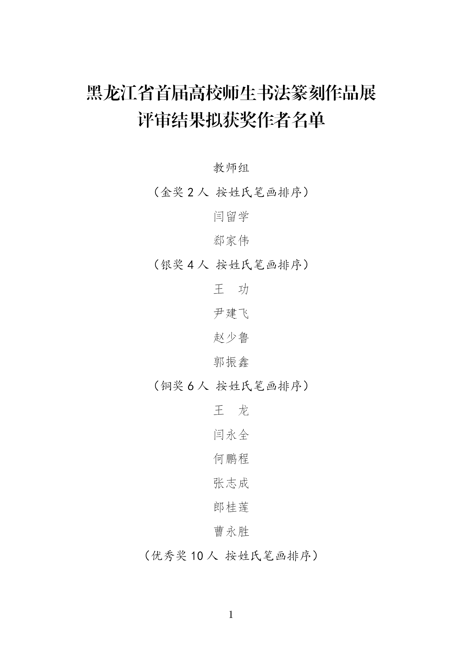现将黑龙江省首届高校师生书法篆刻作品展评审结果进行公示。如有异议,请在2025年11月21日-11月25日公示期间,向黑龙江省书法家协会反映。