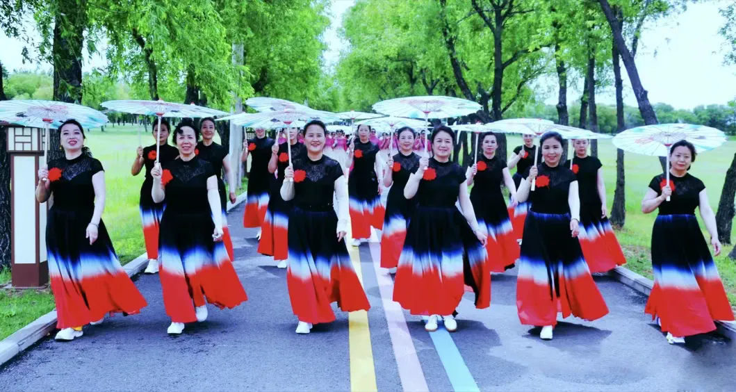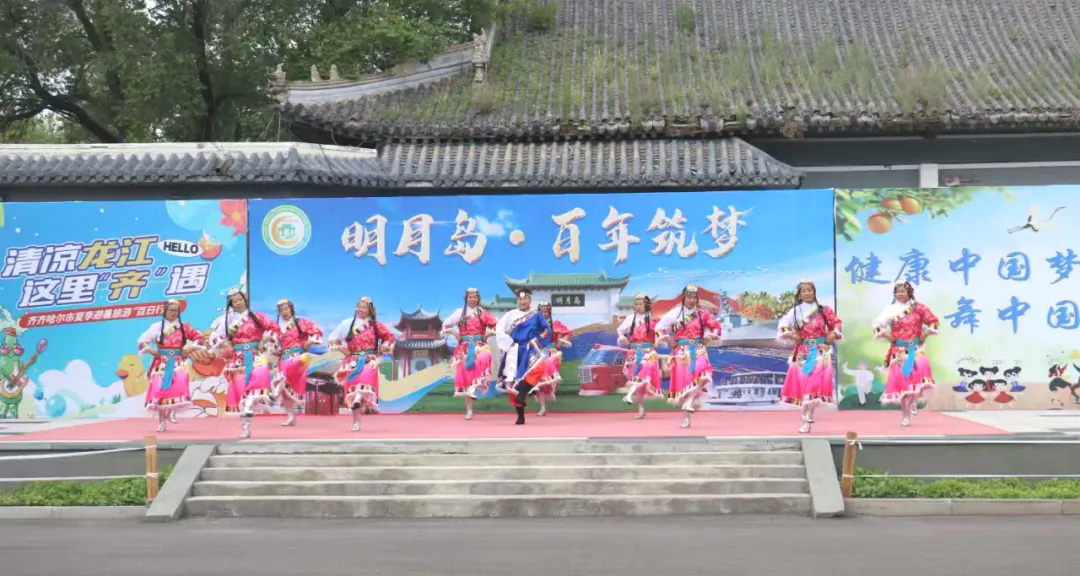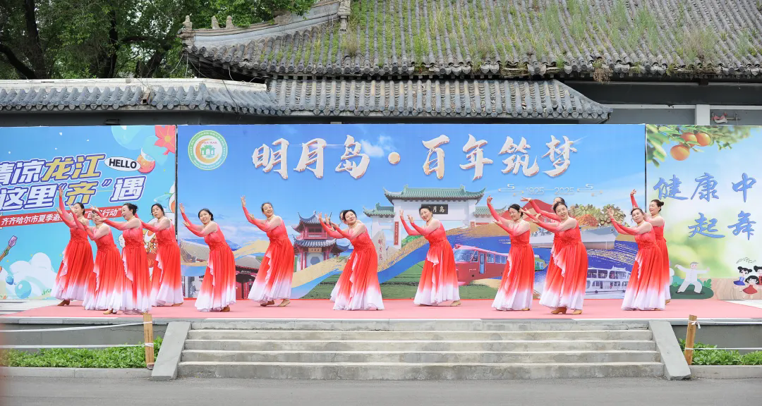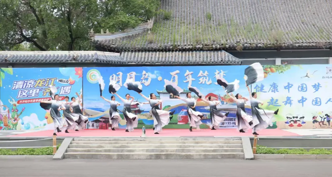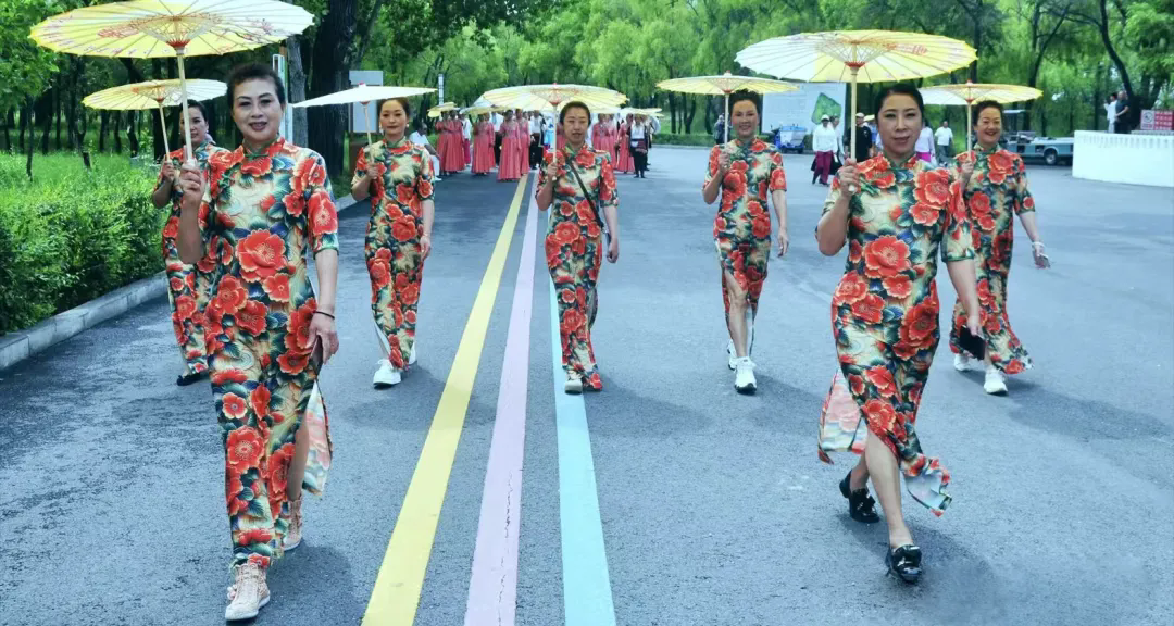 活动现场,气氛热烈而欢快。由齐齐哈尔市舞蹈家协会新文艺群体带领的27个团队,相继表演了《杏花落》《千古情韵》《想西藏》《春光美》《春风十万里》《草原欢歌》等精彩舞蹈节目。随后,备受期待的时装走秀环节将活动推向高潮。32支模特团队、700余位表演者依次亮相,在碧水蓝天的映衬下尽展风采:有的手撑油纸伞,迈着轻盈而优雅的步伐踏上浮桥;有的裙摆飞扬,精致的服饰细节在阳光下熠熠生辉;有的不时驻足回眸,一颦一笑间尽展东方神韵。摄影师们频频按下快门,多架无人机在空中盘旋,从不同视角捕捉这场时尚活动的精彩瞬间。观众们被精彩的表演深深吸引,赞叹声与掌声此起彼伏。