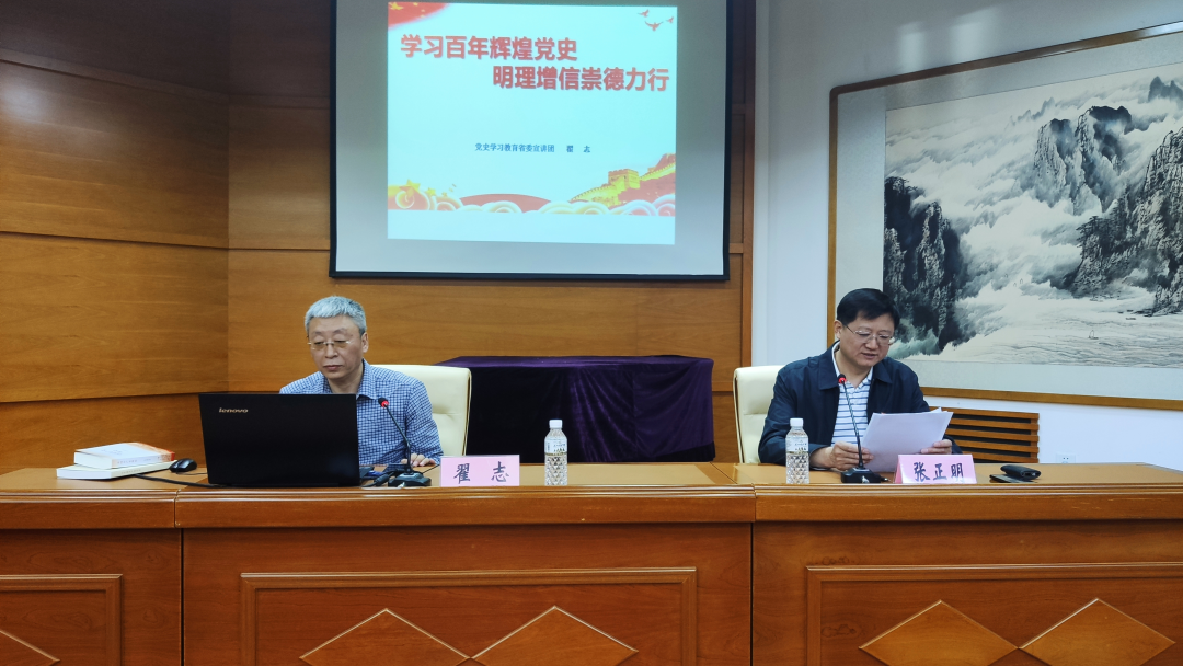 为落实省委党史学习教育领导小组《关于认真组织参加党史学习教育专题宣讲的工作要求》,扎实推进党史学习教育,结合省文联党史学习教育读书班授课安排,5月18日,省文联特别邀请了党史学习教育省委宣讲团成员、哈尔滨师范大学政教系教授翟志作《学习百年辉煌党史 明理增信崇德力行》专题宣讲报告。省文联党组书记张云凯,省文联副主席、党组成员张正明、黄锦秋,省文联全体党员干部参加专题宣讲。