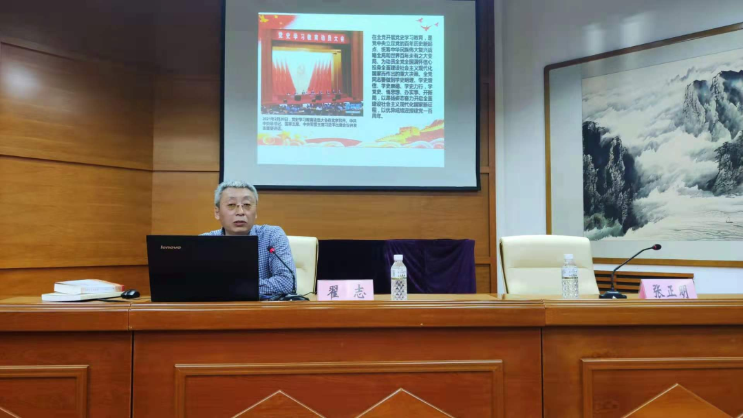 报告会上,翟志教授以《学习百年辉煌党史 明理增信崇德力行》为主题,围绕在党史学习教育中要做到学史明理、学史增信、学史崇德、学史力行,教育引导全党同志学党史、悟思想、办实事、开新局的目标要求,从充分认识开展党史学习教育的重大意义、认真研读党史基本著作,全面了解中国共产党百年奋斗的光辉历程和历史性贡献、深刻把握开展党史学习教育的重点、学懂弄通做实习近平新时代中国特色社会主义思想,凝聚起建设社会主义现代化新龙江的强大力量等四个方面,对开展党史学习教育进行了深入解读。