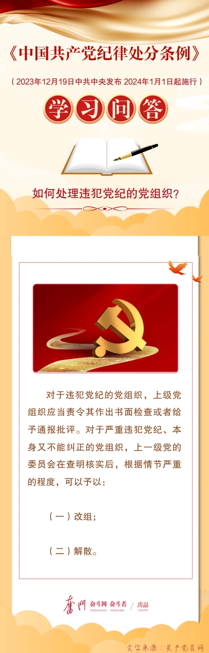 《条例》学习问答④丨如何处理违犯党纪的党组织?
