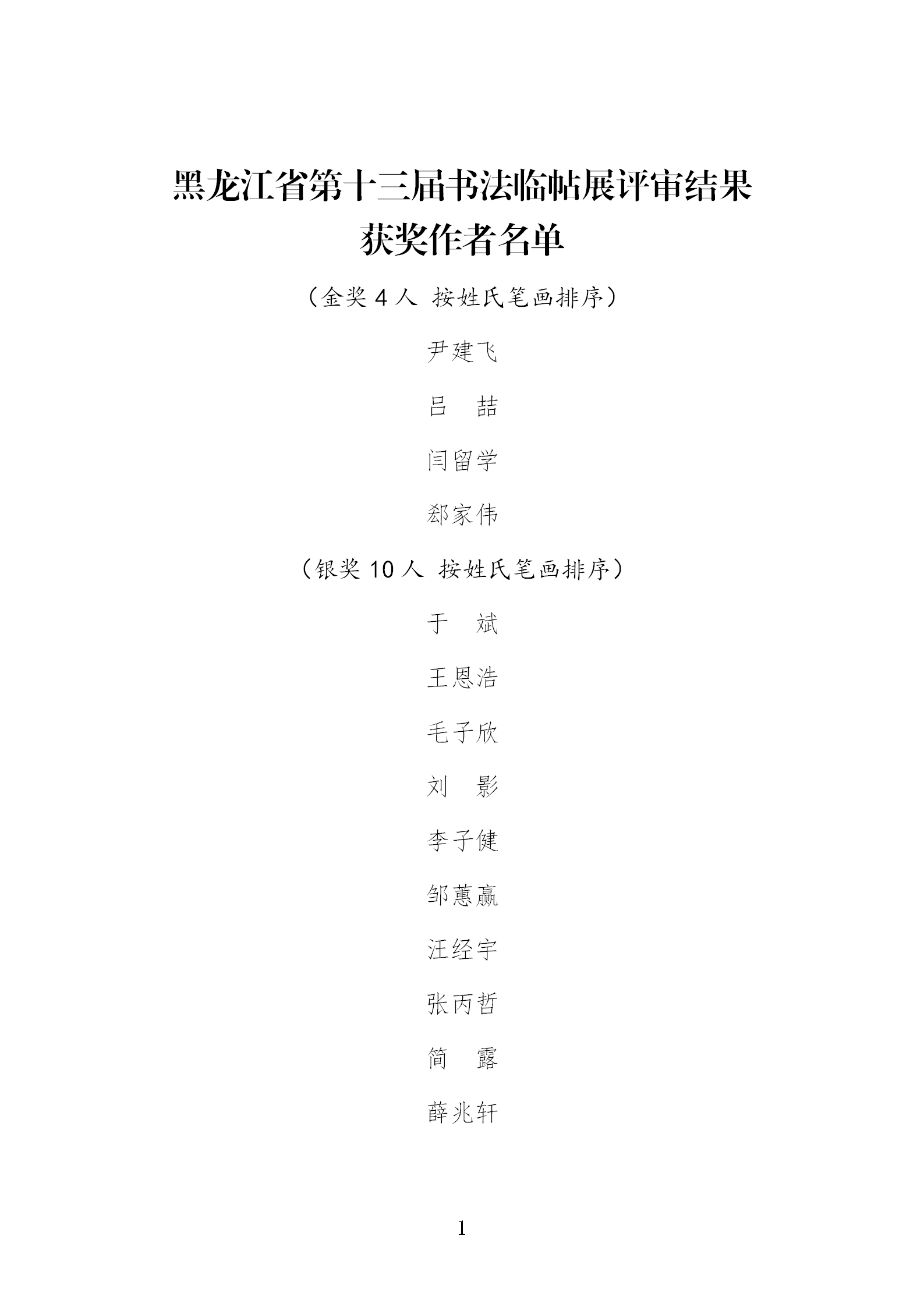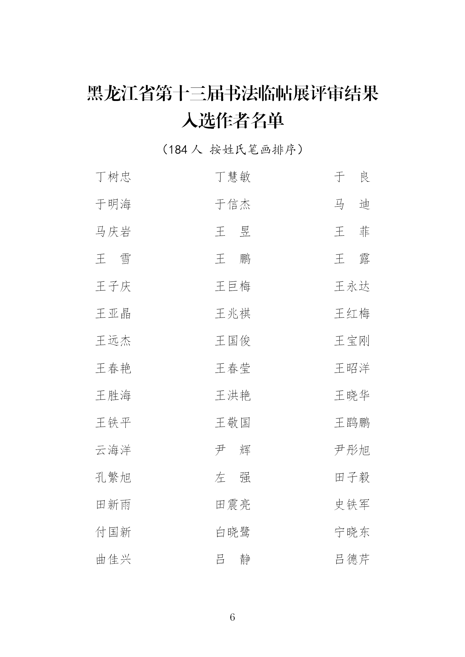 按照《黑龙江省第十三届书法临帖展》征稿启事和评审规定,经评审委员会评审、视频抽查考核,获奖、入展、入选作者名单现予公布。