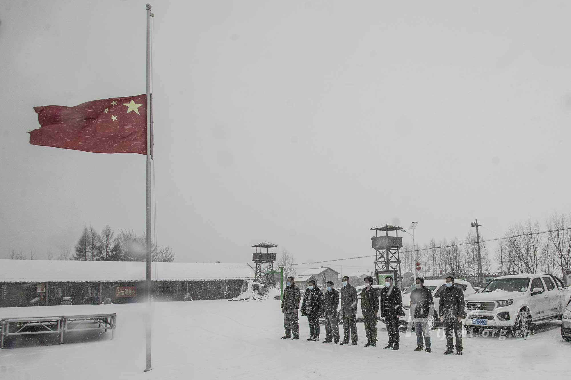 4日上午10时。饶河县小南河村两委及党员村民代表在村委会小广场,鸣笛默哀,深切哀悼新冠肺炎疫情牺牲烈