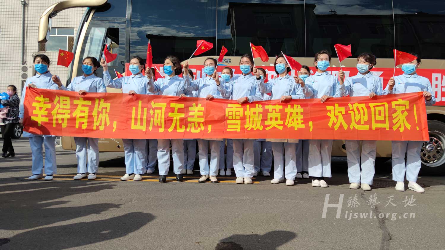 2020年3月21日,牡丹江市参加黑龙江省援鄂医疗队的91名队员圆满完成诊治任务后乘包机返回家乡,天