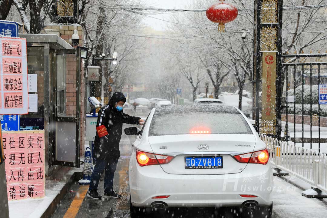 检测体温,2月14日北京朝阳区双龙南里小区。