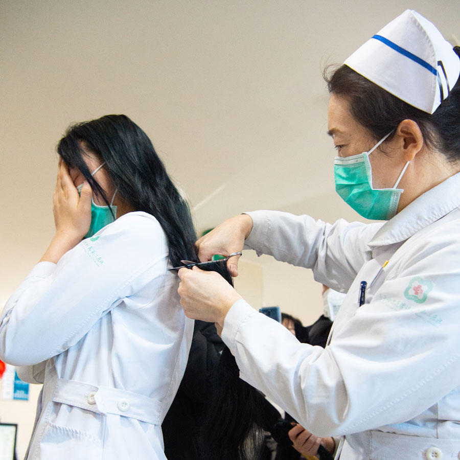任凭--齐齐哈尔医学院附属三院呼吸与危重症医学科一病房的护士积极报名援鄂,为方便工作剪去长发。