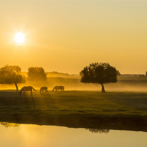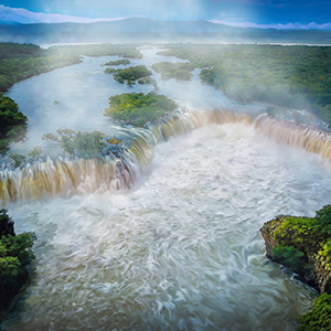 张万和--《落日熔金山林艳 半江轻纱水生魂》