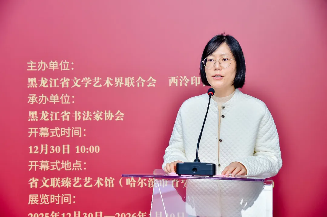 陆霞在致辞中表示,西泠印社与黑龙江省文联因共同的文化理念而携手,近年来合作成果显著。此次展览汇集了黑龙江篆刻精锐之作,既是艺术家才情技艺的集中展示,更是双方跨越地域、深化协作、共育文化硕果的生动写照。她表示,西泠印社继续把握战略合作带来的机遇,汇聚多方力量,着力打造更多具有重要影响力、更高艺术品质、更强创新活力的展览和活动,进一步推动金石篆刻这一中华优秀传统文化的创造性转化、创新性发展,让古老的篆刻艺术在新时代焕发出更加璀璨的光华。