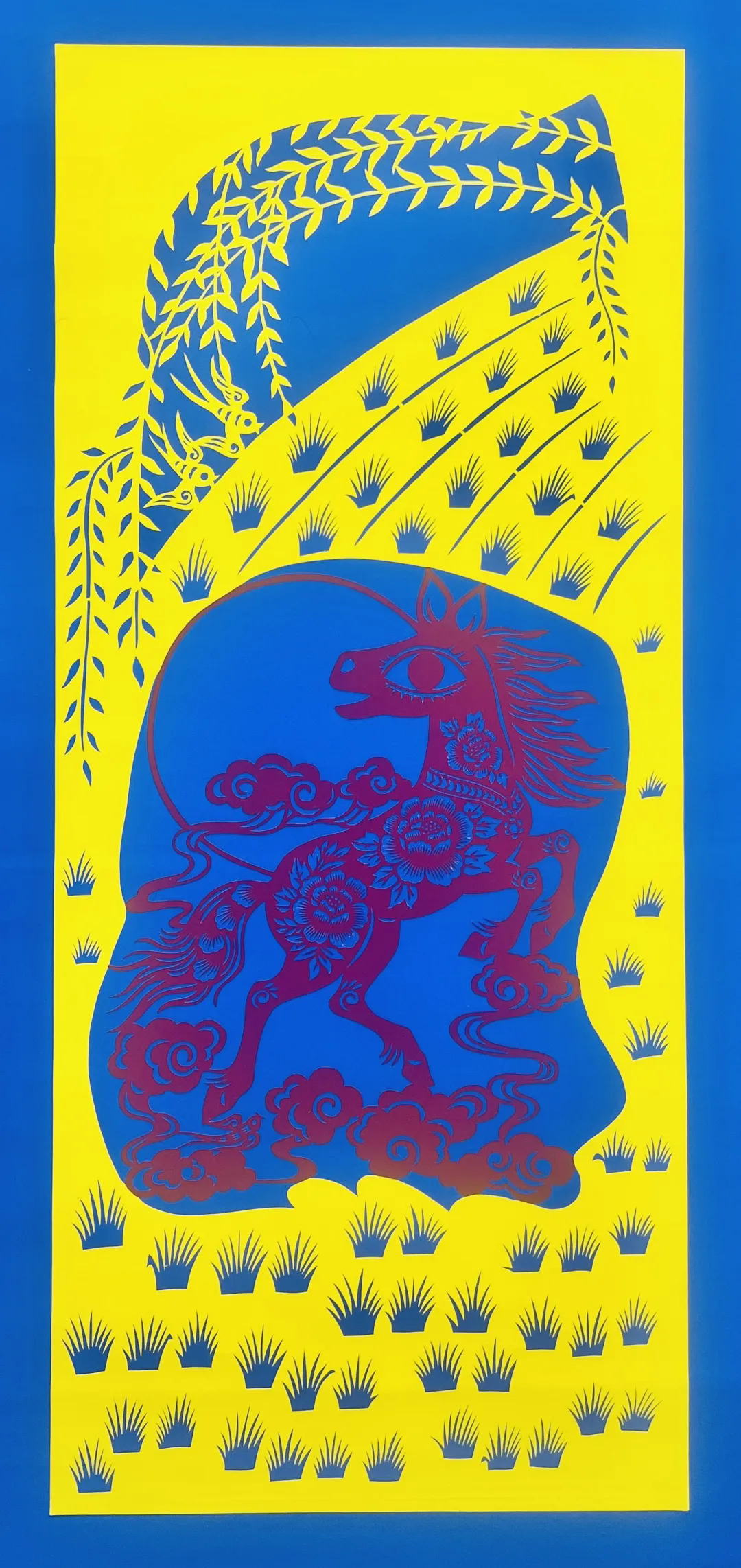 沈子娟《骏马繁花图》(剪纸)