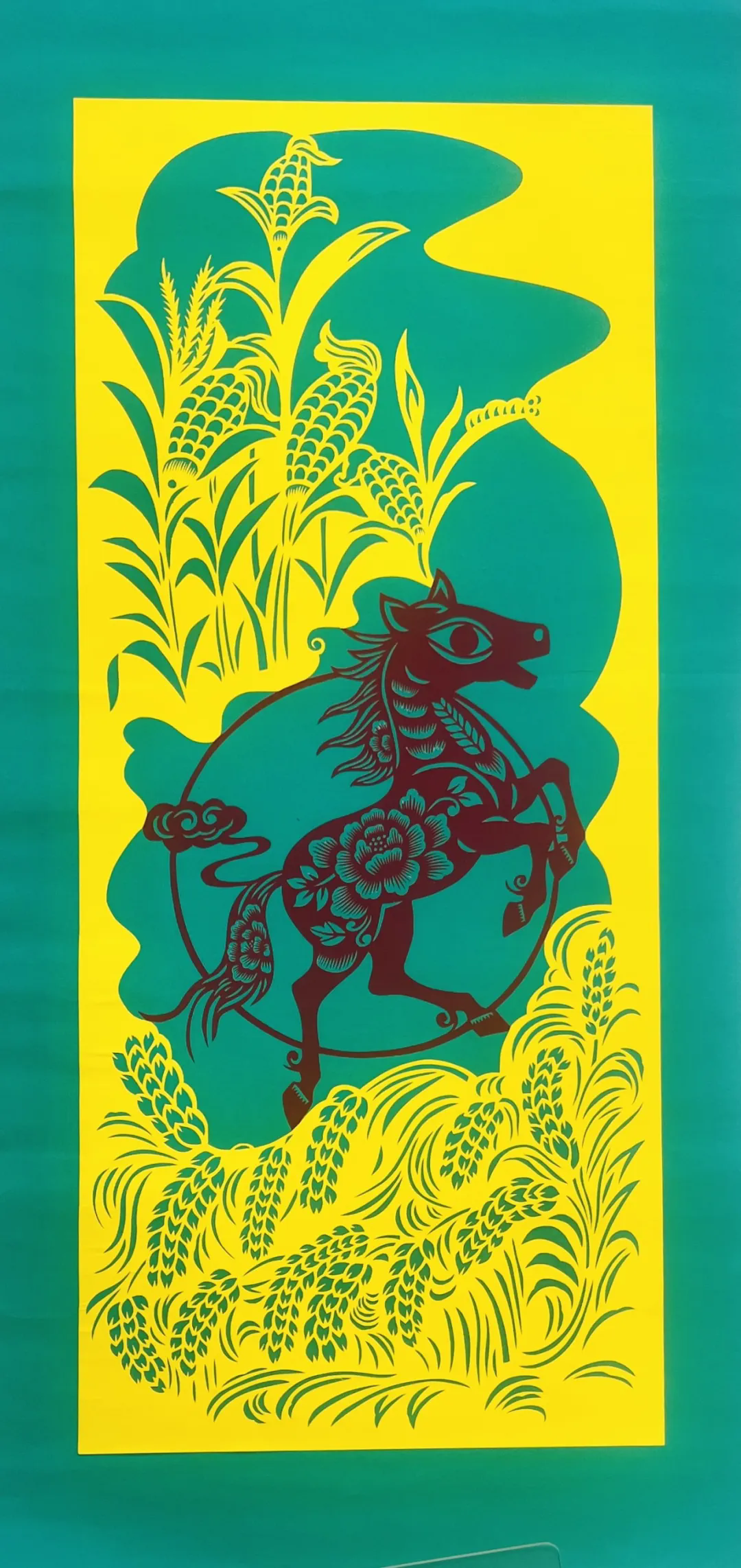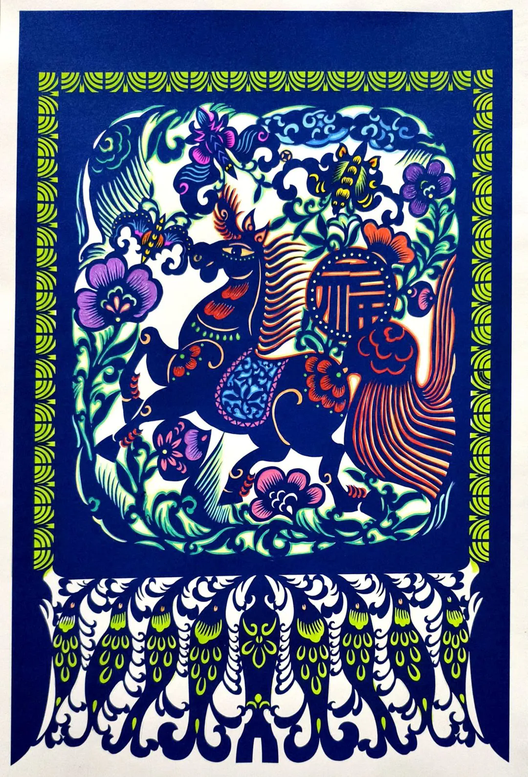 韩杨《瑞马呈祥盛世花开》(剪纸)