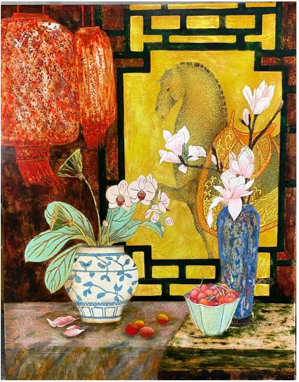 梁智程《金窗玉影伴骅骝》(漆艺)