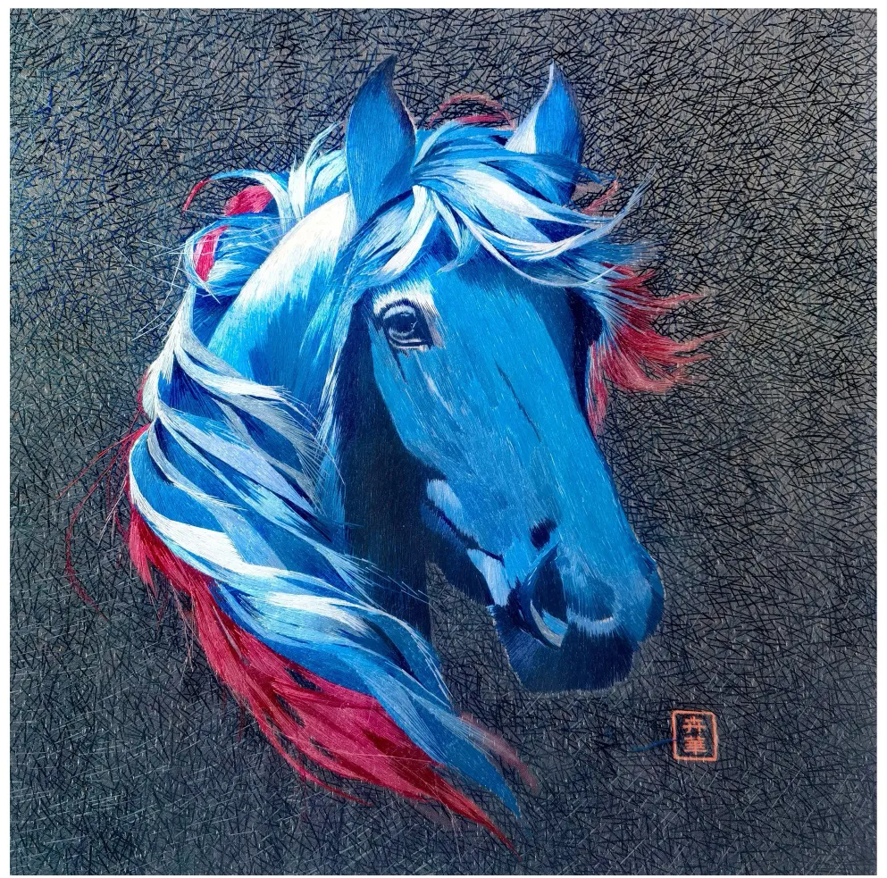 解永亮《一马当先》(鱼皮画)