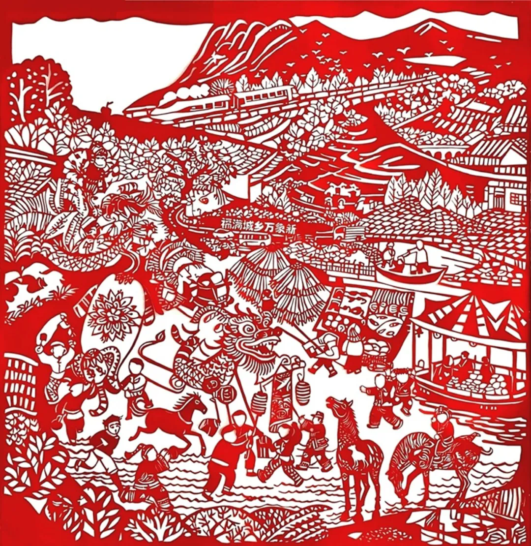 史晓暄《福满城乡万象新》(剪纸)
